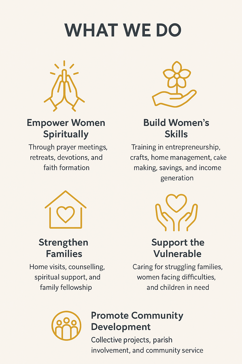 As you explore our website, I invite you to learn more about our mission and walk with us in promoting spiritual renewal, women’s development, and holistic community growth.